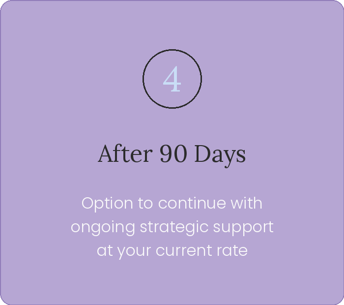 90 days. A real strategy. Someone in your corner.